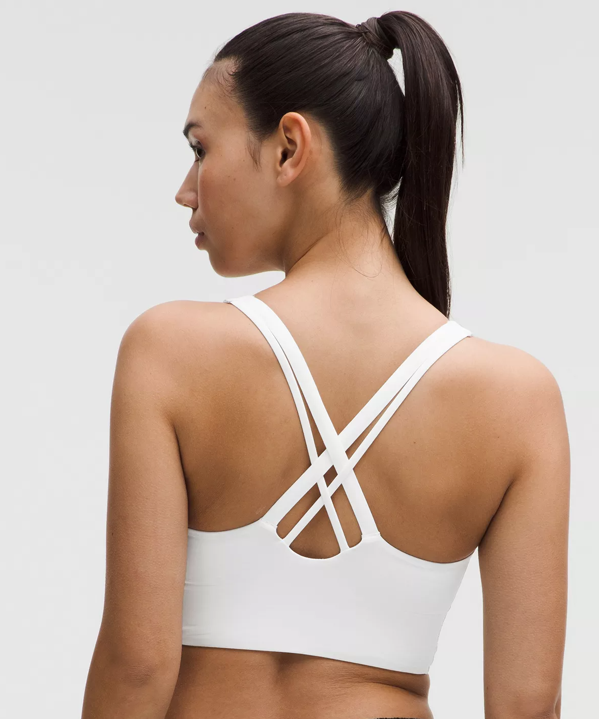 Back crossover straps are placed to clear shoulder blades for minimal distractions and have varied widths for dimensionLightweight elastic underband is thoughtfully constructed with low-profile seams for optimal comfortPockets for optional, removable cups